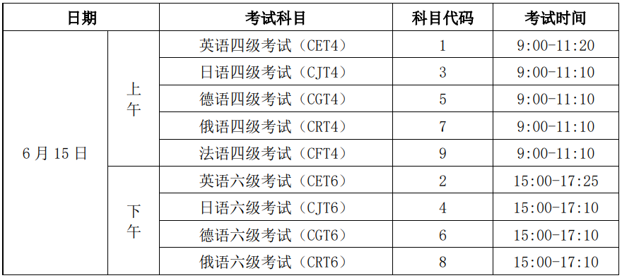(二)CET及小语种科目和考试时间