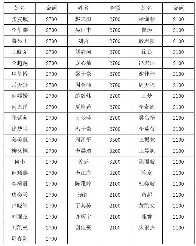 根据本科生院《关于开展2023年国家奖助学金评选工作的通知》要求,依据国家助学金评选办法,国家助学金金额每生每年在2000元至4500元范围内确定,不可分档超过4档,不可突破上下限额。本着以学生为本,资助优先的原则,综合学生困难生认定等级,学院奖助学金评审委员会将资助金额在原评定资助标准上进行了适当调整。特殊困难认定学生给予每人3200元资助,困难认定学生给予每人2700元资助,一般困难认定学生给予每人2100元资助。