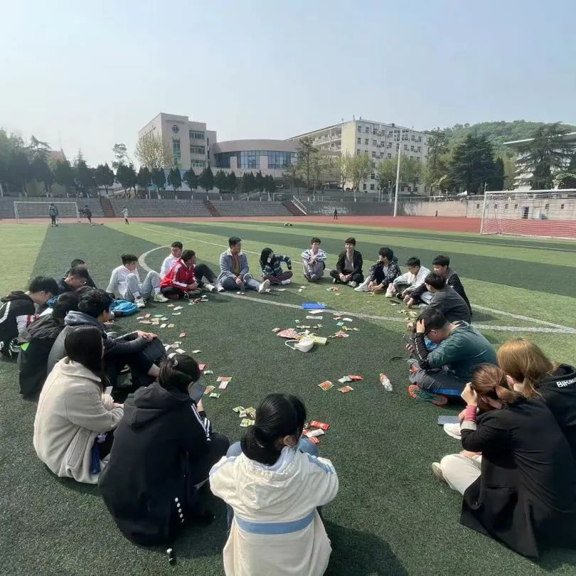 正如李白在《江南春怀》中所言:“青春几何时,黄鸟鸣不歇”,美好的春日就是应该不停歇。为了激发同学们的参与度和积极性,在下午的活动中,两位辅导员相博文老师和王晶老师以及两个班的班委共同组织了几项趣味小游戏。大家席地而坐,互相自我介绍,又参与了“蹲下起立”,“气球运输”等活动,不亦乐乎。