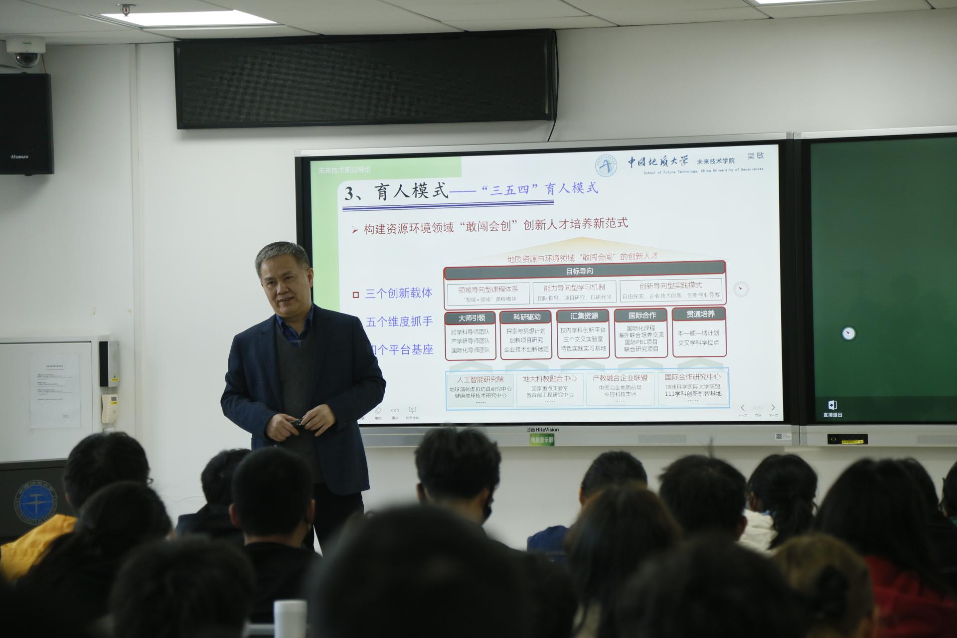 《未来技术前沿导论》课程面向williamhill英国大一新生,作为新工科背景下跨学科高水平人才培养的通识课程,该课程旨在让学生了解williamhill英国覆盖的学科领域和知识体系,掌握未来技术前沿的概念、研究方法、研究领域及发展动向,熟悉人工智能、新一代信息技术与地球科学交叉融合的未来发展。课程自今年3月开始,分为8讲共计16学时,由王焰新院士、谢树成院士、吴敏教授等8位教授共同讲授。