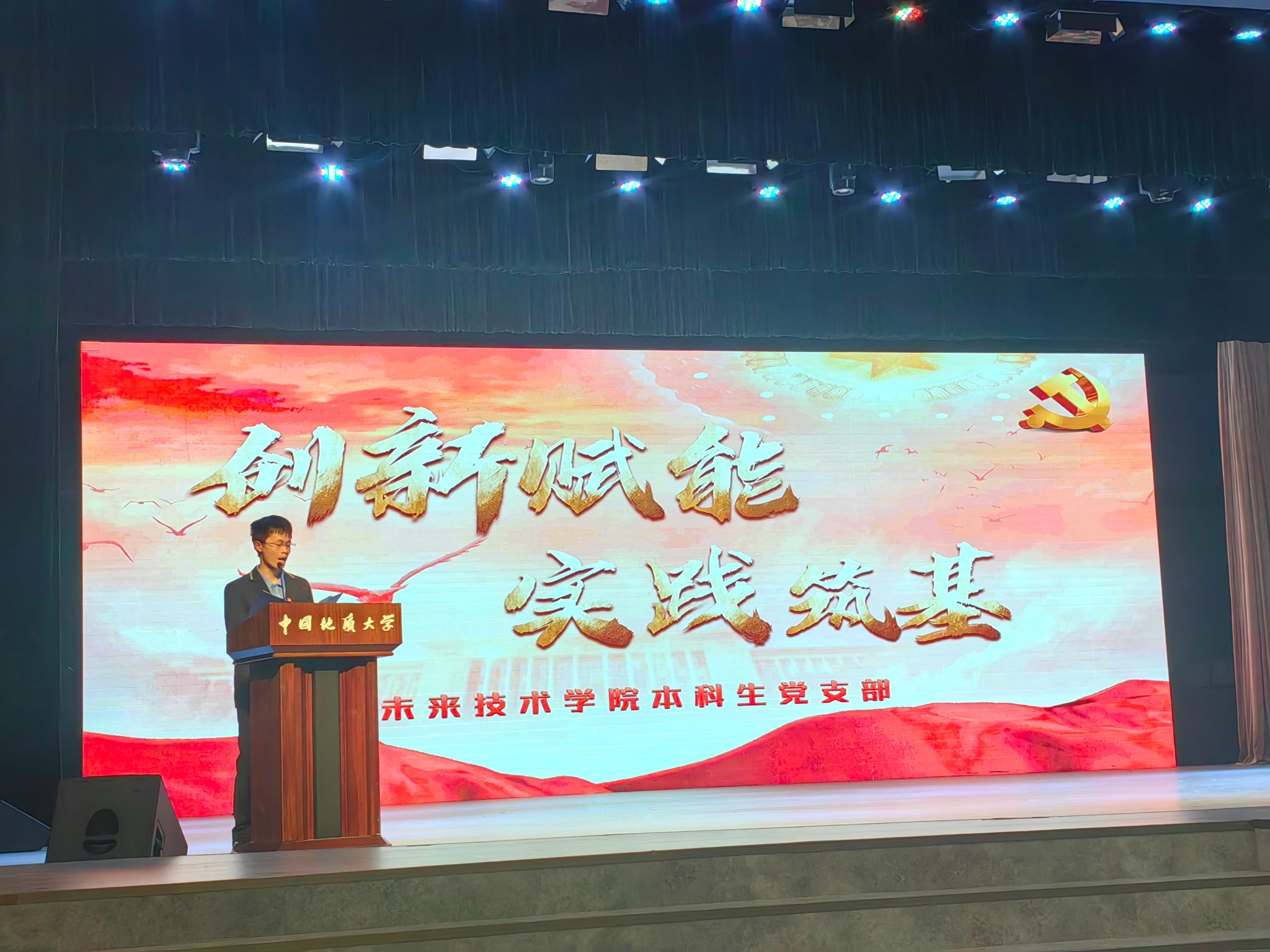 在支部风采展示环节,支部书记吴远丰以“创新赋能,实践筑基”为题,介绍了williamhill英国本科生党支部立足“地球科学+人工智能”的学院特色,通过“思想铸魂、实践赋能、创新致远”三位一体路径,建设学习型、服务型、创新型支部,引领支部成员成长的特色做法。支部通过制作“青声习语”微党课,每年组建专题社会实践团队,充分利用武汉市及周边红色景点开展主题实践活动加强思想引领;同时利用产学研实践机会、“探索与猜想计划”等学院平台,组织支部成员在实践中强化科技报国之志,在科创项目与高水平竞赛中提升综合素质,引领成员怀“红色心”、练“硬核功”,书写科技报国青春篇章。