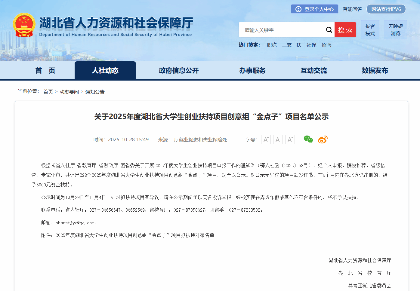 据悉,湖北省大学生创业扶持项目由省人社厅联合省教育厅、省财政厅、团省委共同组织实施,评审标准严格,涵盖项目进展、创新水平、市场前景及带动就业能力等多个维度,对入选项目给予不同额度的无偿资金扶持,是湖北省针对大学生创业的重要支持政策之一。