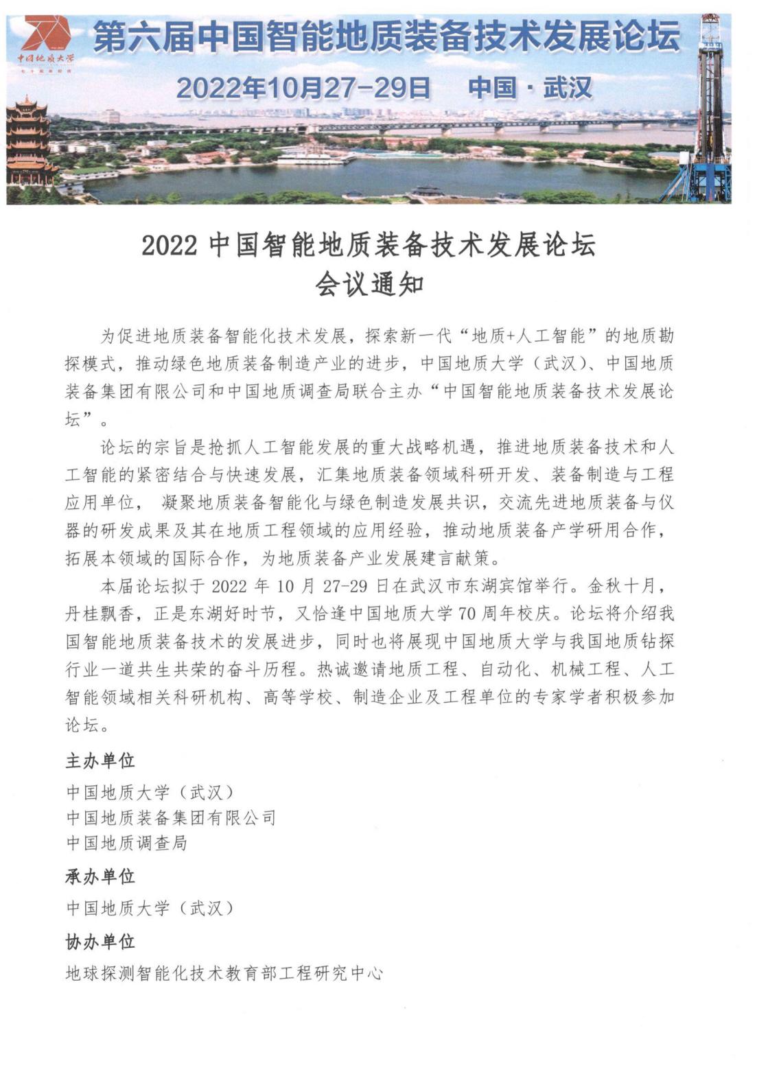 2022年中国智能地质装备技术发展论坛会议通知(一号通知)